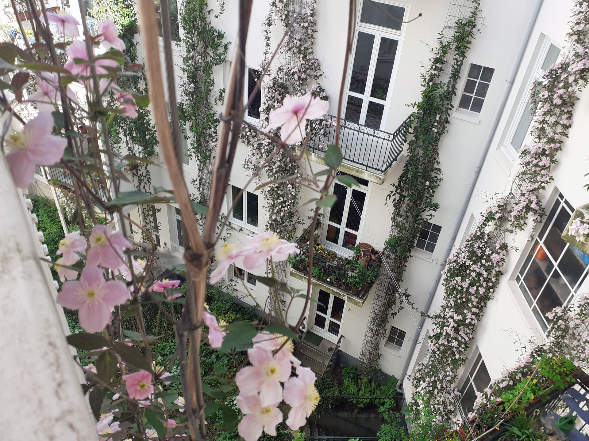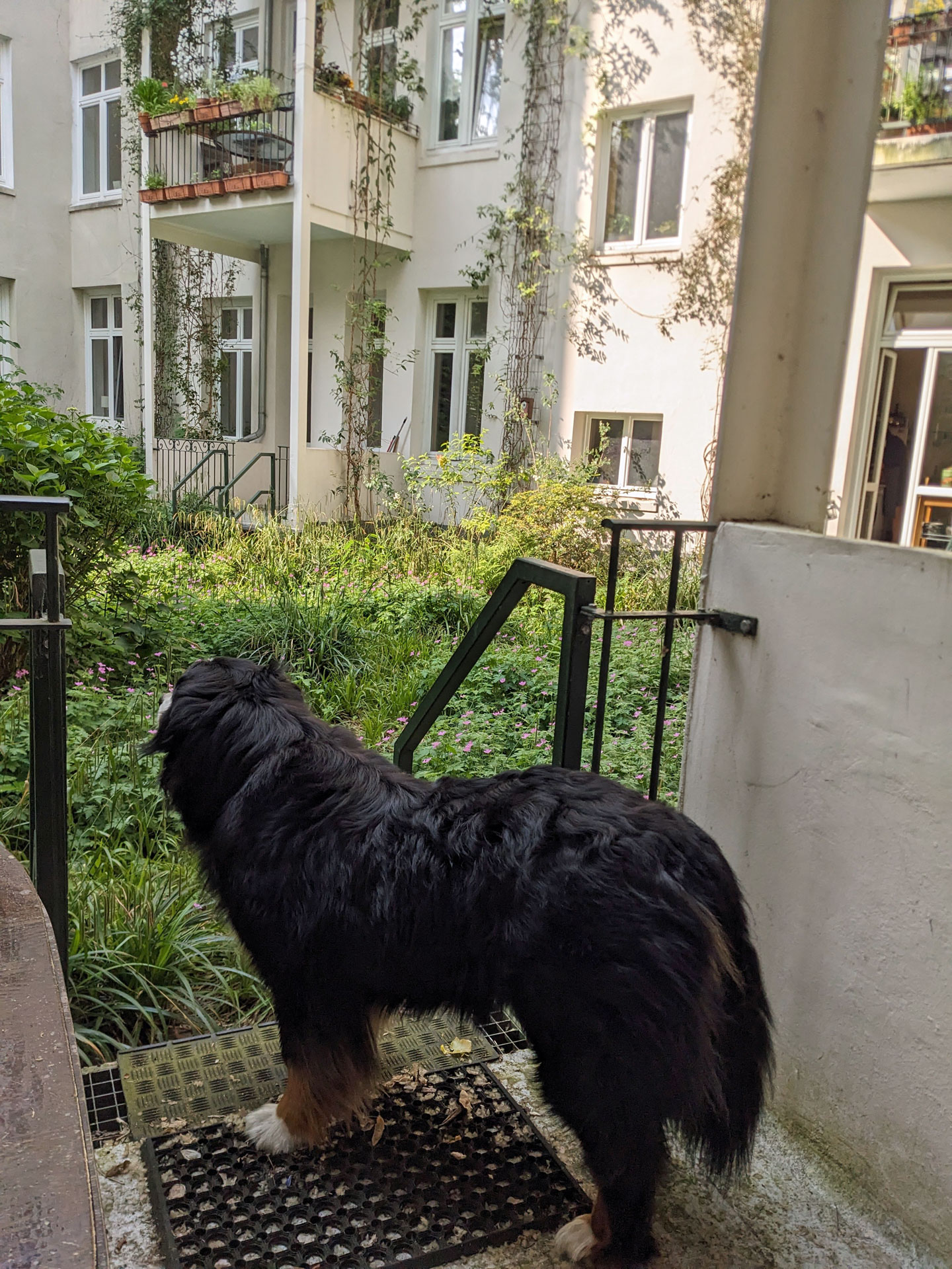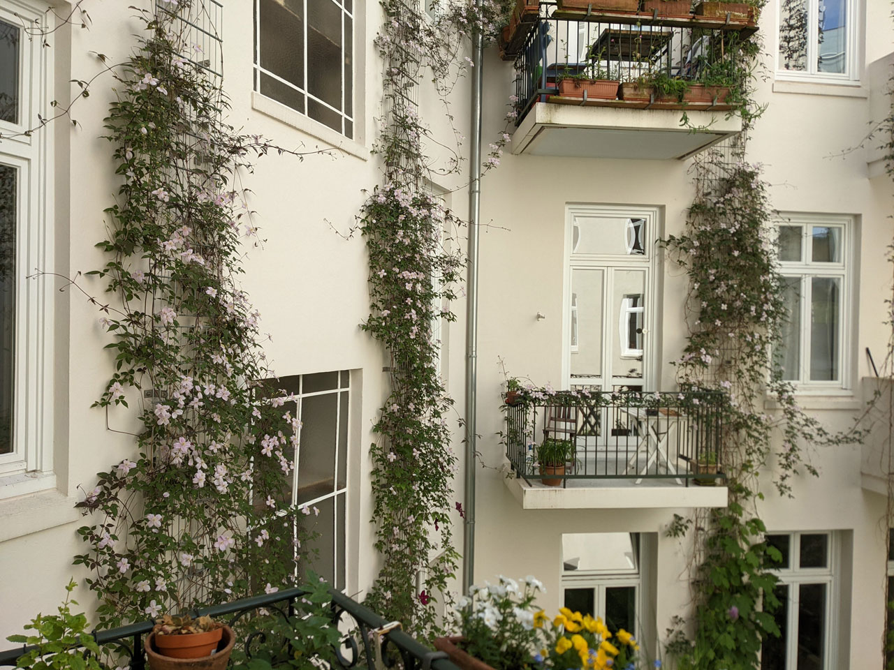 Was kaum jemand weiß: Auf der Rückseite des Hauses Hayn-/Hegestraße befindet sich ein grünes Idyll, ein gärtnerisch gestalteter Innenhof, mit Wildblumenwiese und Kletteranlagen für Rankgewächse, die Vögeln und Insekten eine Heimat bieten und Einfluss auf das Mikroklima nehmen.